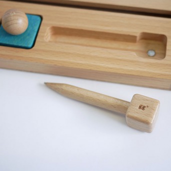 Zauber-Zeichentafel aus Holz mit 3 Stempeln und magnetischem Stift. Inkl. einer passenden Jutetasche.